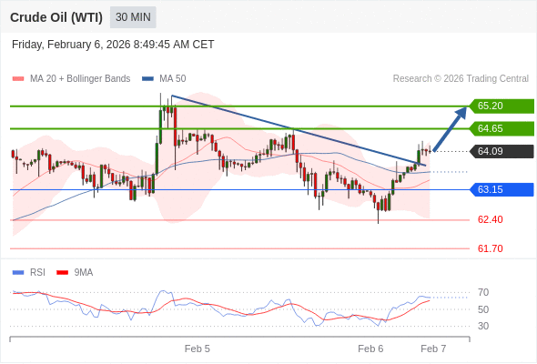 在 63.15 之上,看涨,目标价位为 64.65 ,然后为 65.20 。