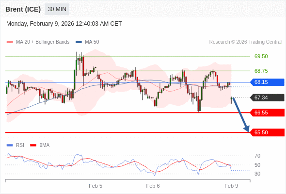在 68.15 之下,看跌,目标价位为 66.55 ,然后为 65.50 。