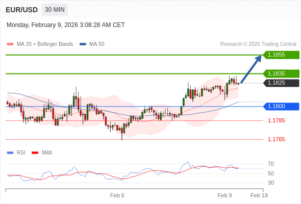 在 1.1800 之上,看涨,目标价位为 1.1835 ,然后为 1.1855 。