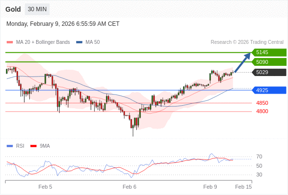 在 4925 之上,看涨,目标价位为 5090 ,然后为 5145 。