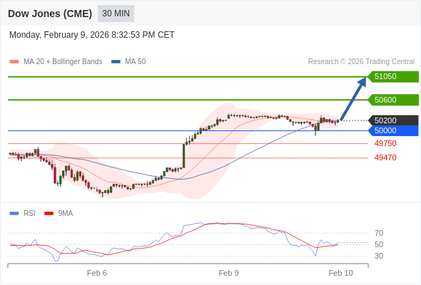 在 50000 之上,看涨,目标价位为 50600 ,然后为 51050 。