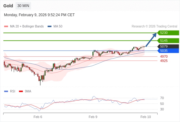 在 5035 之上,看涨,目标价位为 5145 ,然后为 5230 。