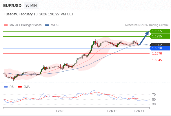 在 1.1890 之上,看涨,目标价位为 1.1935 ,然后为 1.1955 。