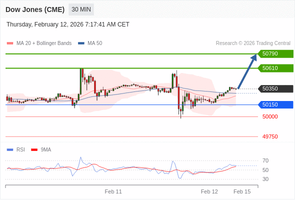 在 50150 之上,看涨,目标价位为 50610 ,然后为 50790 。