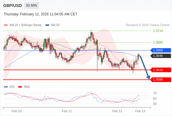 在 1.3660 之下,看跌,目标价位为 1.3610 ,然后为 1.3585 。