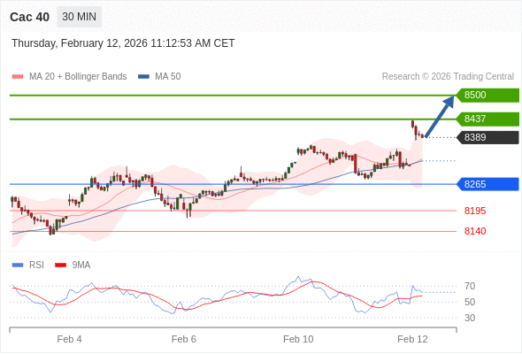 Cac 40 当日内: 在8265之上,看涨。