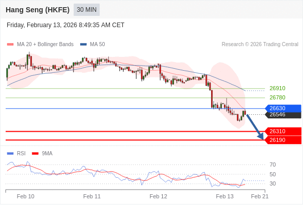 香港恒生指数期货 当日内: 短期关键阻力位在26630。