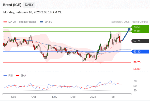 在 63.30 之上,看涨,目标价位为 71.80 ,然后为 73.50 。