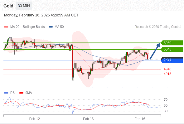 在 4985 之上,看涨,目标价位为 5045 ,然后为 5080 。