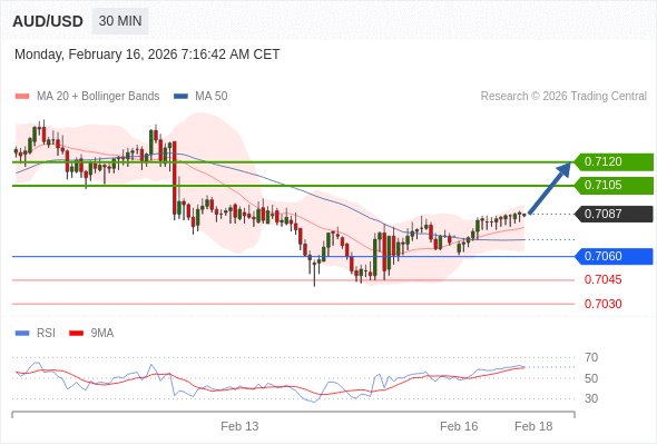 在 0.7060 之上,看涨,目标价位为 0.7105 ,然后为 0.7120 。