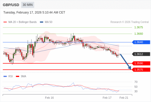在 1.3640 之下,看跌,目标价位为 1.3590 ,然后为 1.3575 。