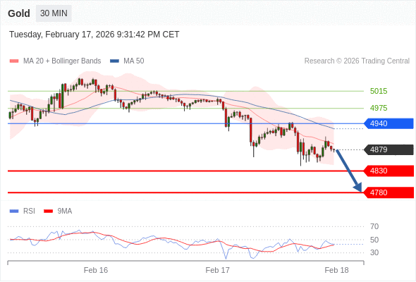 在 4940 之下,看跌,目标价位为 4830 ,然后为 4780 。