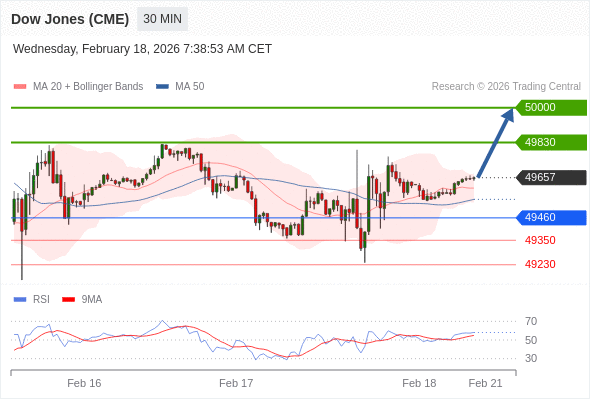 在 49460 之上,看涨,目标价位为 49830 ,然后为 50000 。