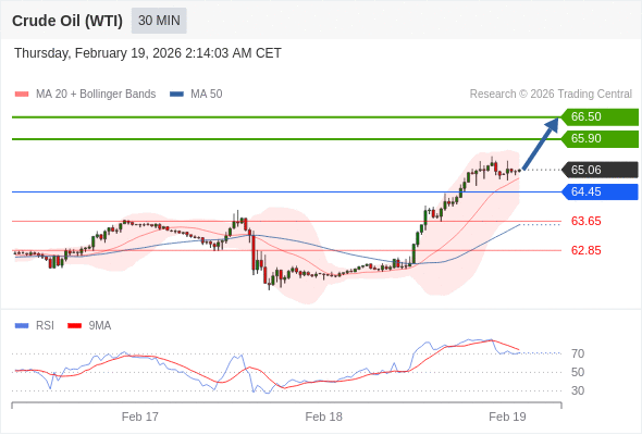 在 64.45 之上,看涨,目标价位为 65.90 ,然后为 66.50 。