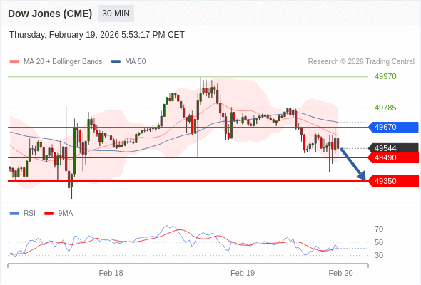 交易策略: 在 49670 之下,看跌,目标价位为 49490 ,然后为 49350 。