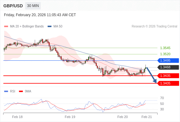 在 1.3470 之下,看跌,目标价位为 1.3435 ,然后为 1.3405 。