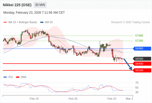 在 56980 之下,看跌,目标价位为 56400 ,然后为 56140 。