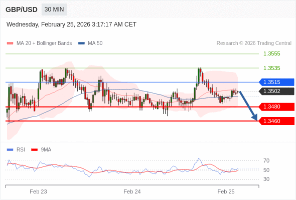 在 1.3515 之下,看跌,目标价位为 1.3480 ,然后为 1.3460 。
