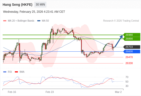 在 26600 之上,看涨,目标价位为 26890 ,然后为 26980 。