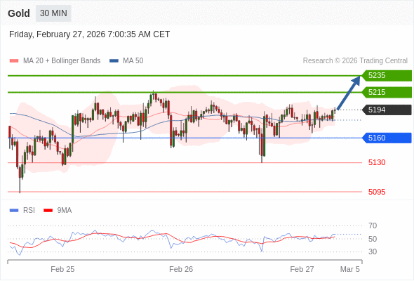 在 5160 之上,看涨,目标价位为 5215 ,然后为 5235 。