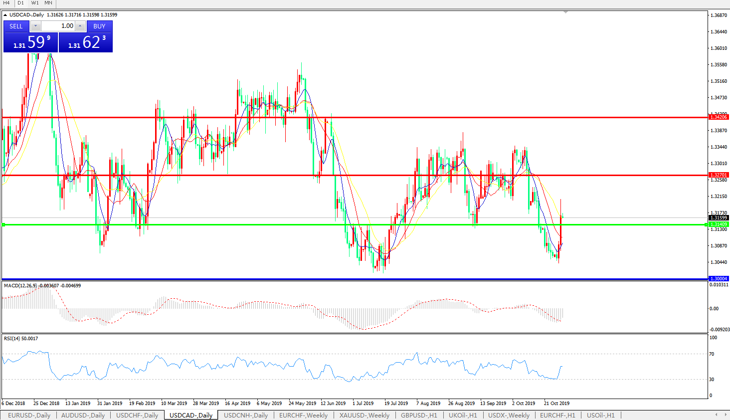 加拿大央行维持利率不变,全球风险因素导致政策声明基调更偏负面; 加拿大央行周三连续第八次维持1.75%的政策利率不变,称此水平“适当”,不过他们下调了对未来两年的增长预期,他们预测在全球经济下行风险加剧的情况下,国内经济前景偏弱,这可能给该行提供更多降息空间;10月份的声明较9月声明有所改变,表明官员们在全球经济疲软的情况下信心不足。10月声明中删除了有关加拿大利率对经济具有刺激性的明确说法,也未提及加拿大经济接近于潜力水平,周三的声明提到加元近期的上涨;该声明和新一轮的更为悲观的增长预测将使人们对加拿大央行有关中性利率立场的承诺提出质疑,特别是在其他许多国家实行宽松政策之际,加拿大央行显得特立独行。如果美联储在今天晚些时候如预期所料降低利率,加拿大央行的政策利率将是工业化国家中最高的; 官员们少见的在利率声明中提到了加元。他们指出,尽管大宗商品价格下跌,但加元兑美元并未贬值,实际上兑其他货币走强了。与此同时,央行预计通货膨胀率在可预见范围内将保持在2%的目标区间,部分原因是对潜在经济增速预期进行了小幅下调,并预期“适度”的产出缺口(主要是石油产区)将缩小。