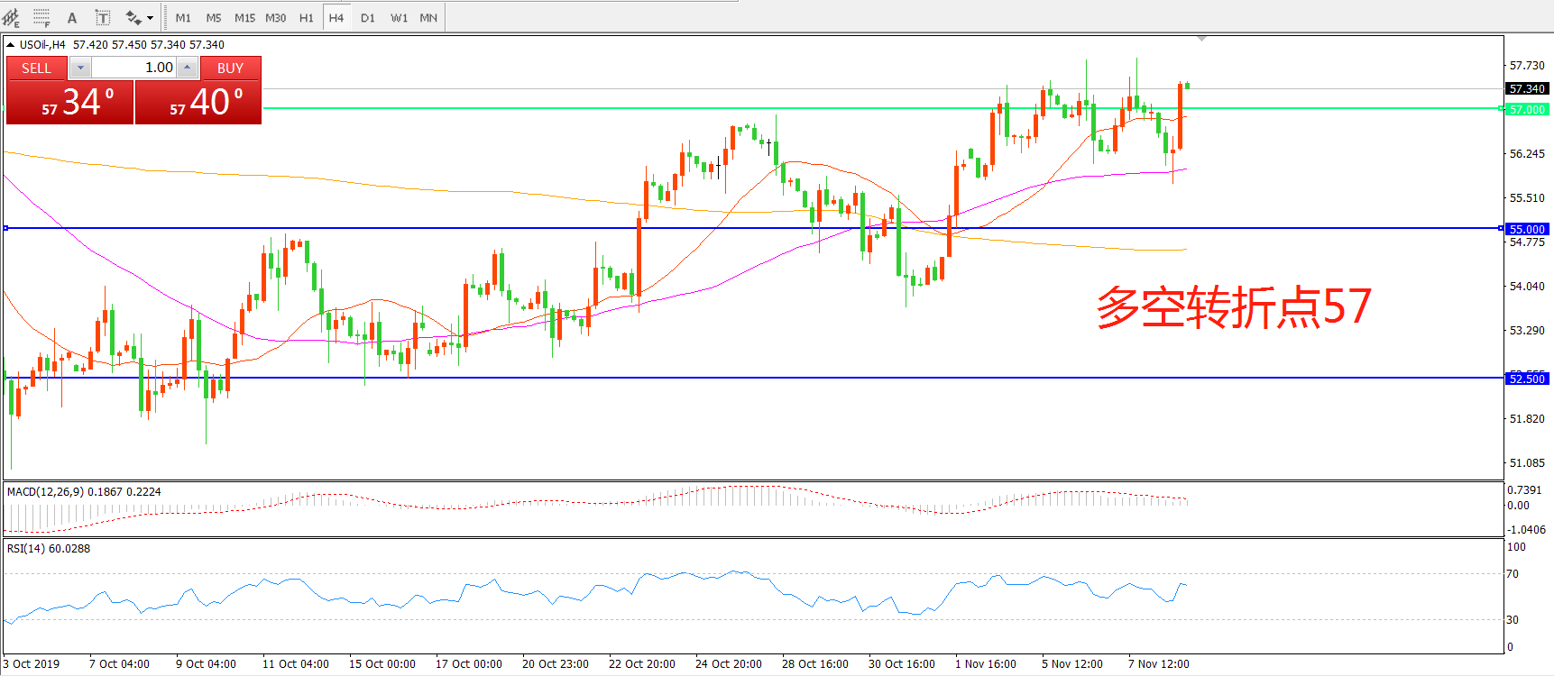 多空转折点:57.00