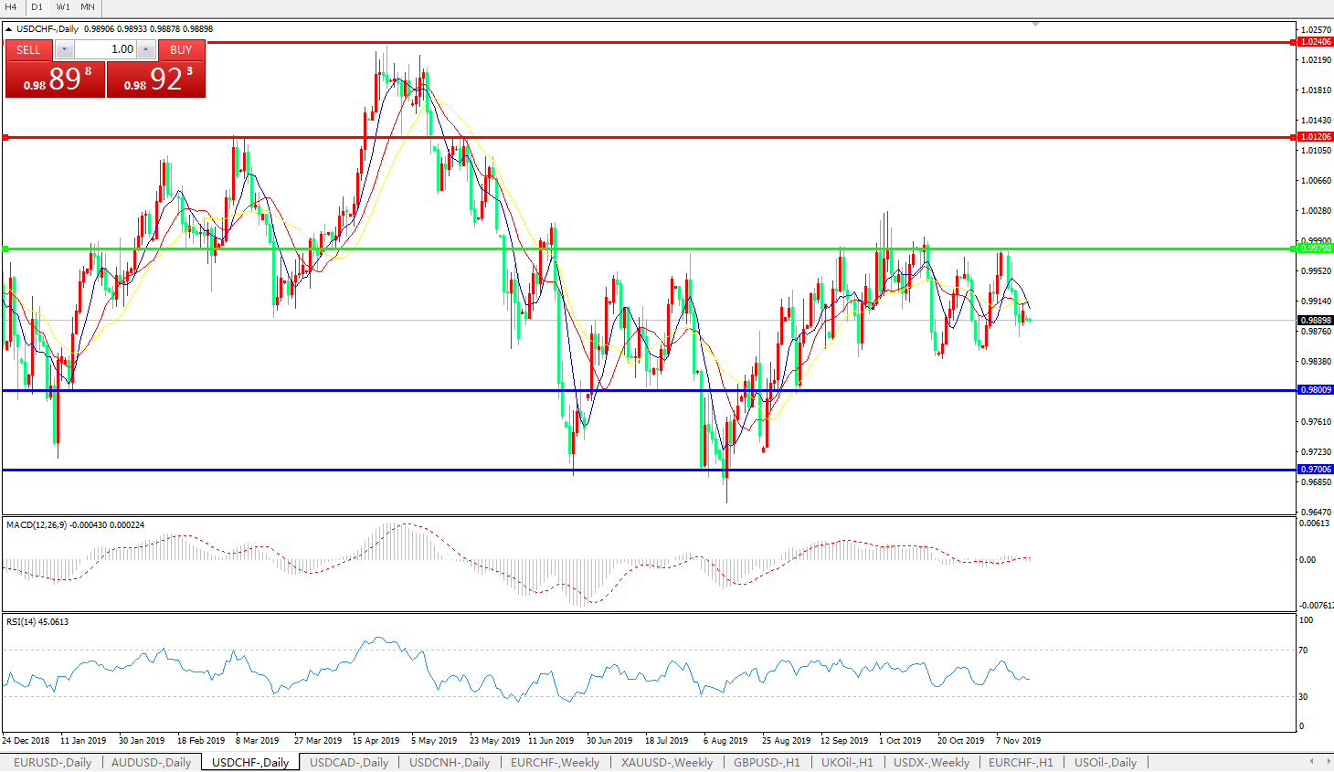 美元兑瑞郎USDCHF    日线