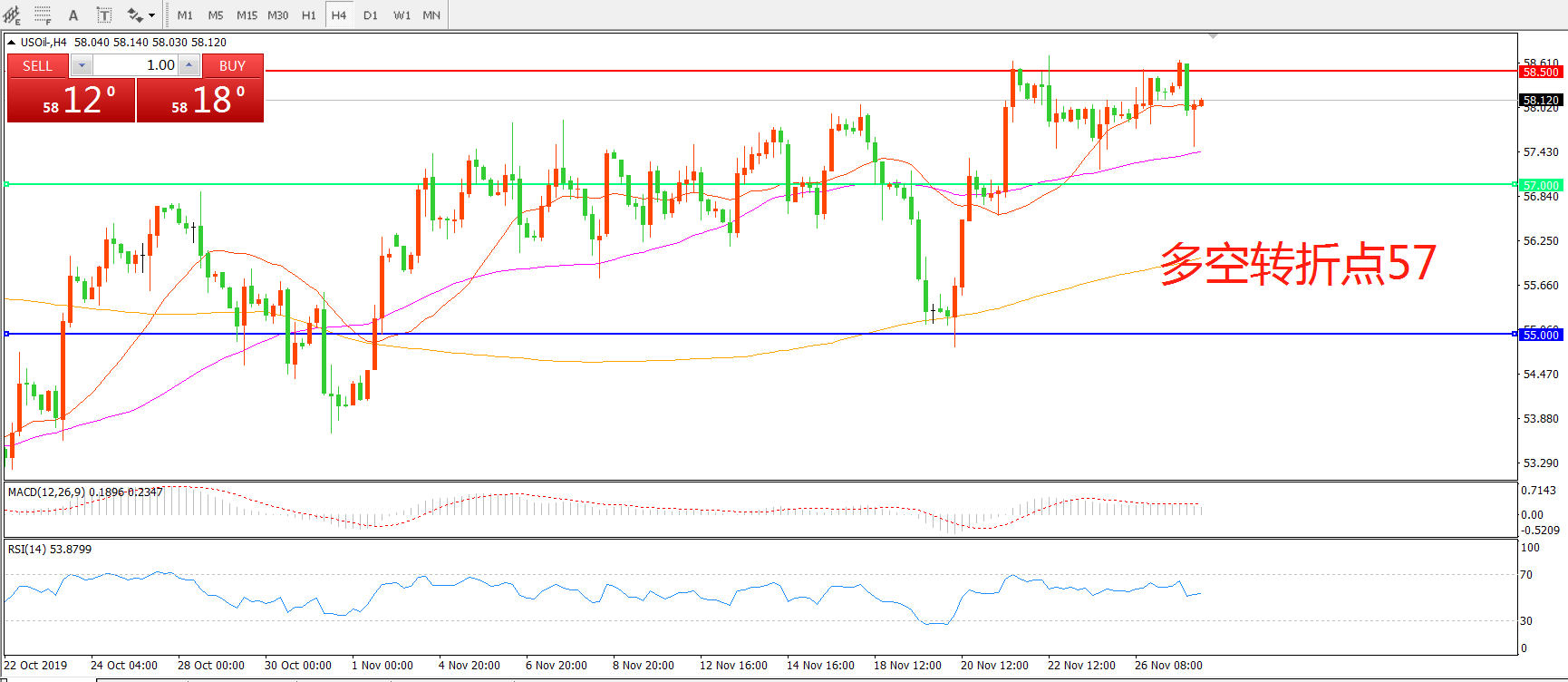 多空转折点:57.00