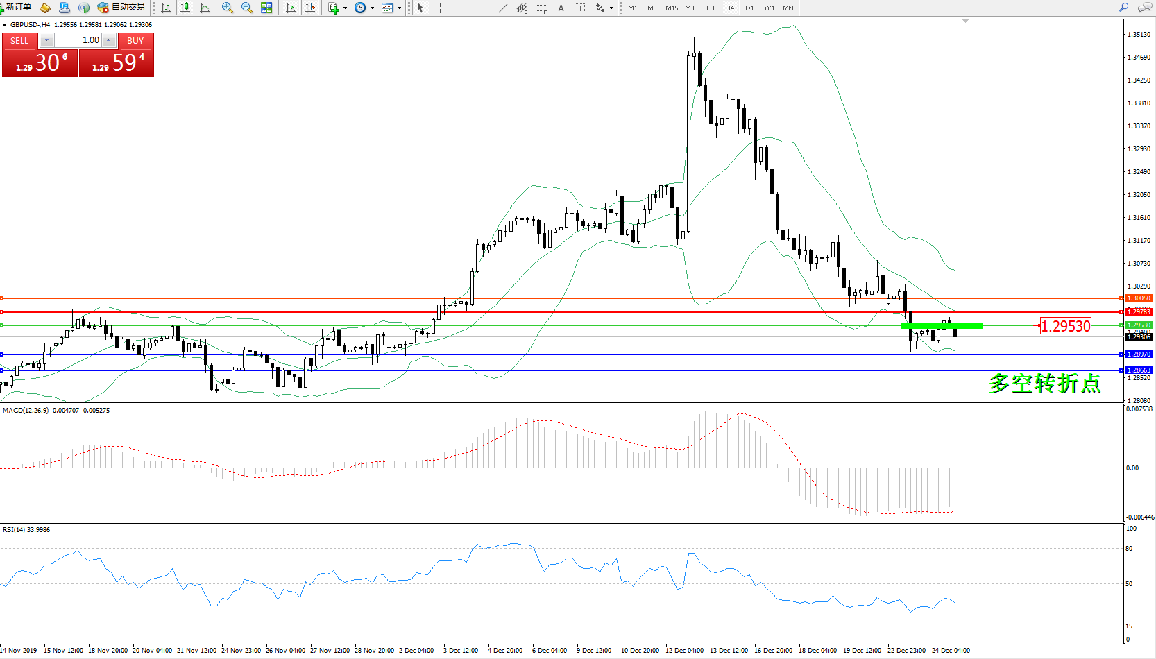 交易策略:1.29530上方看涨,目标1.29783、1.30050