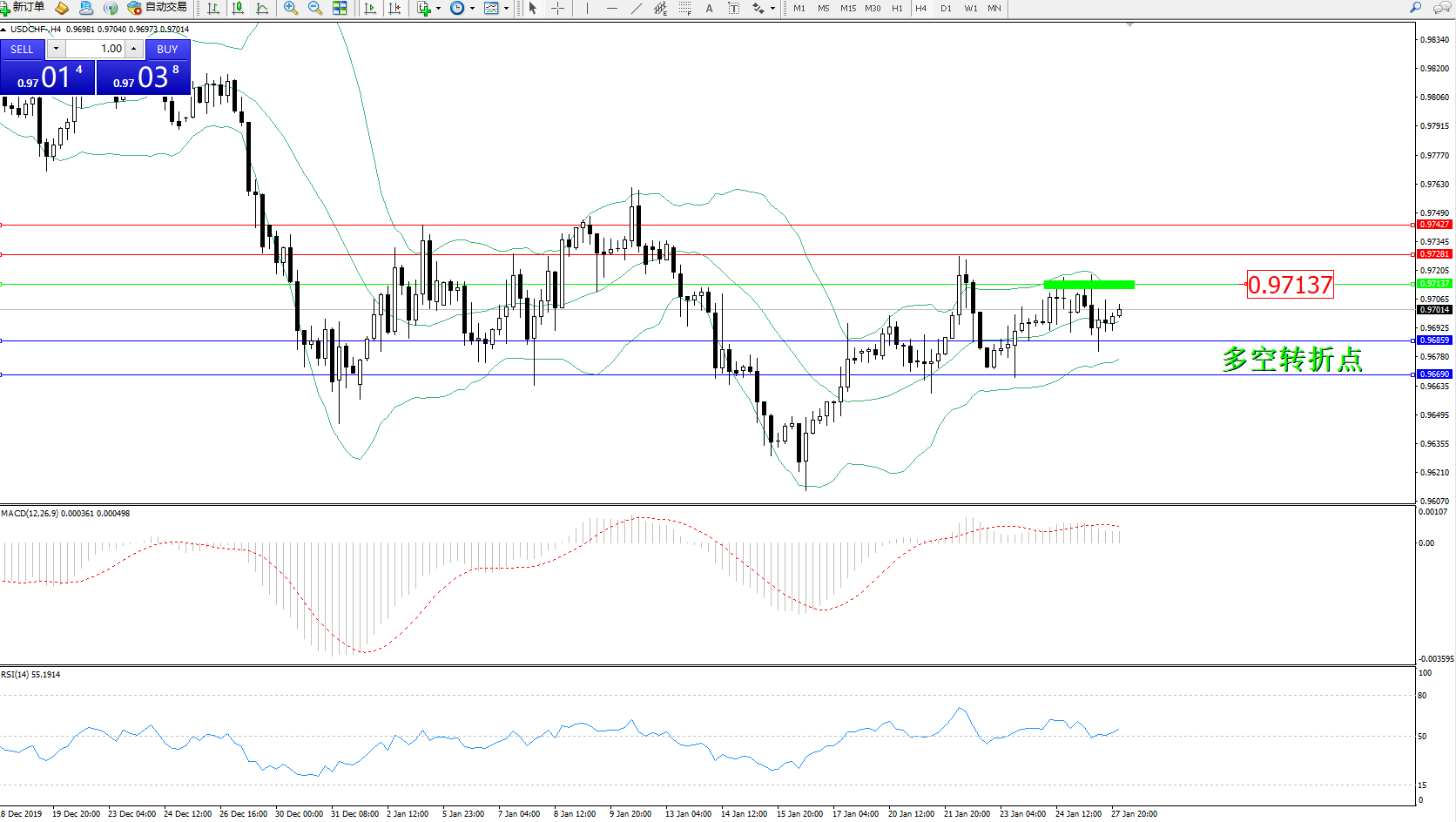 美元瑞郎USDCHF——4小时K线图显示: