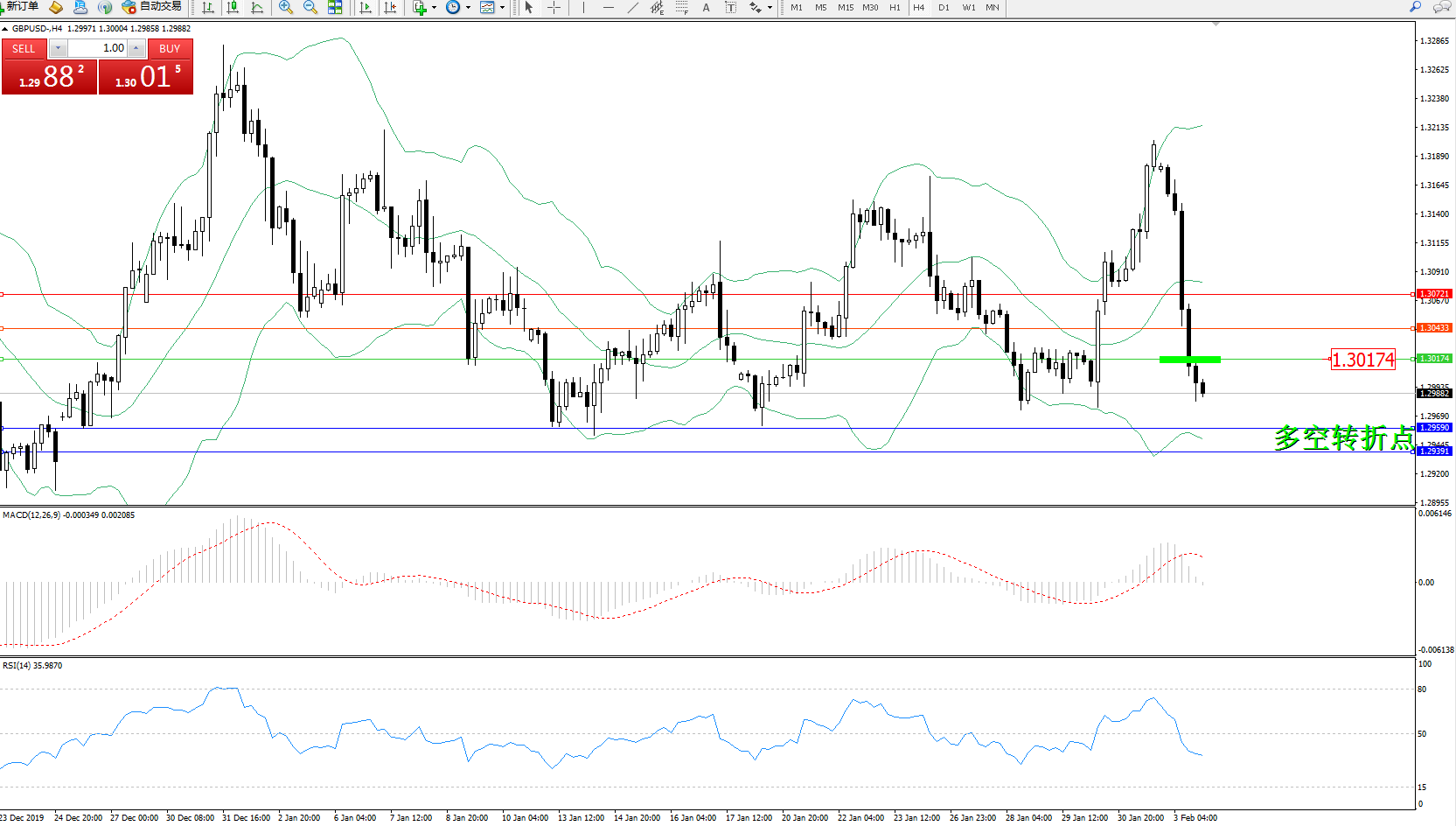 交易策略:1.30174下方看跌,目标1.295901.29391