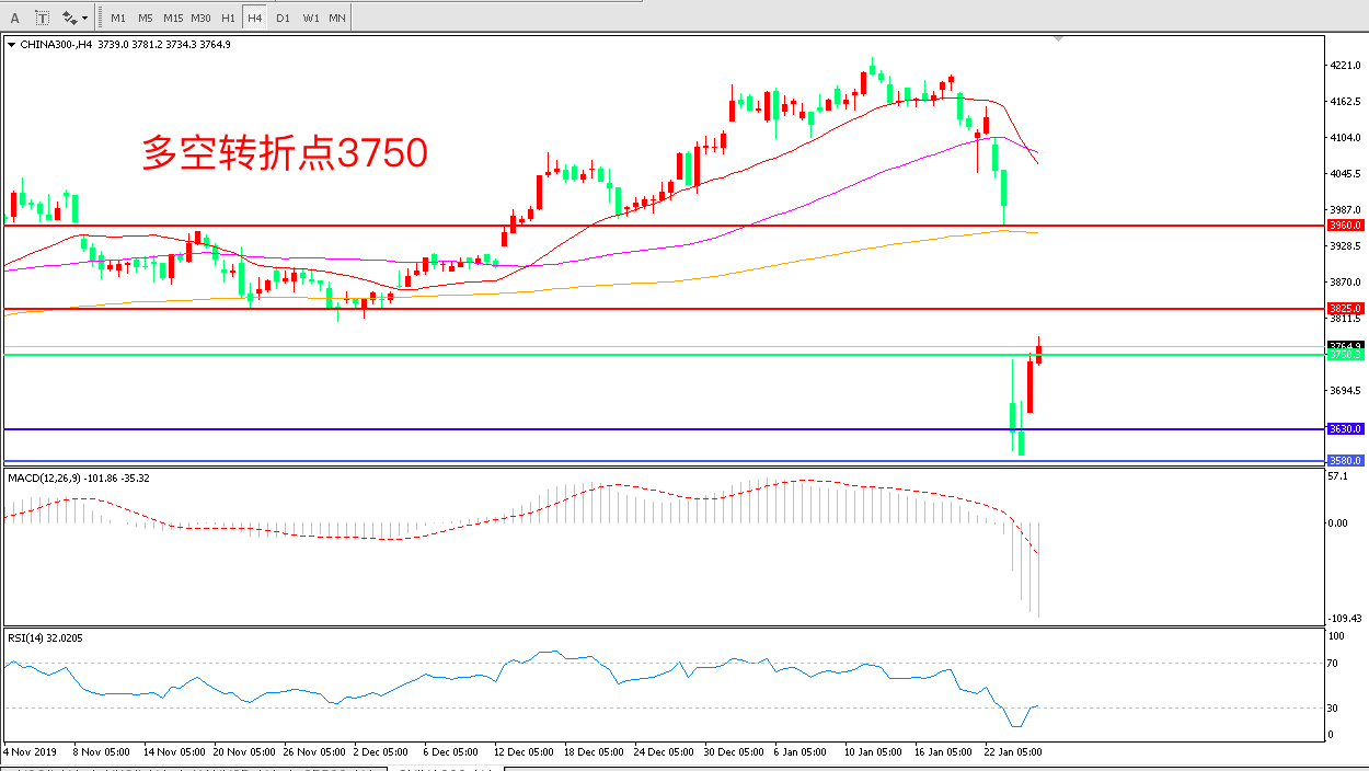 沪深300  CHINA 300   4小时图