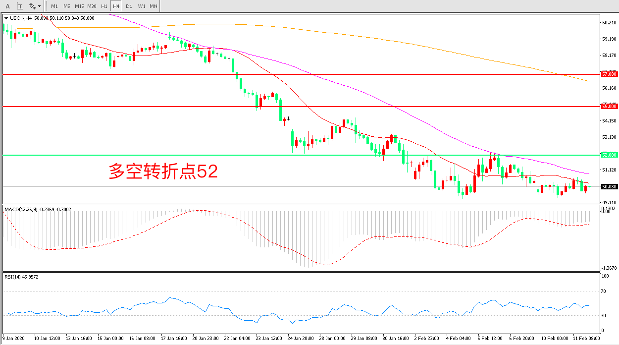 交易策略:在52.00之下看跌,目标49.00         45.00