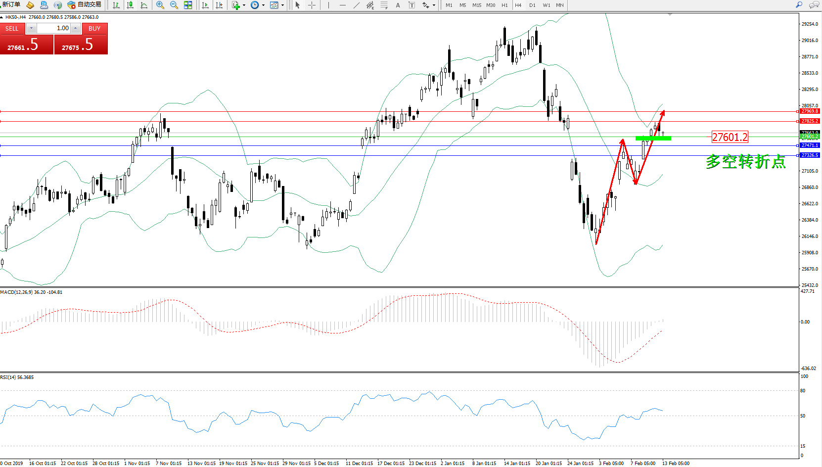 恒指HK50 ——4小时K线图显示: