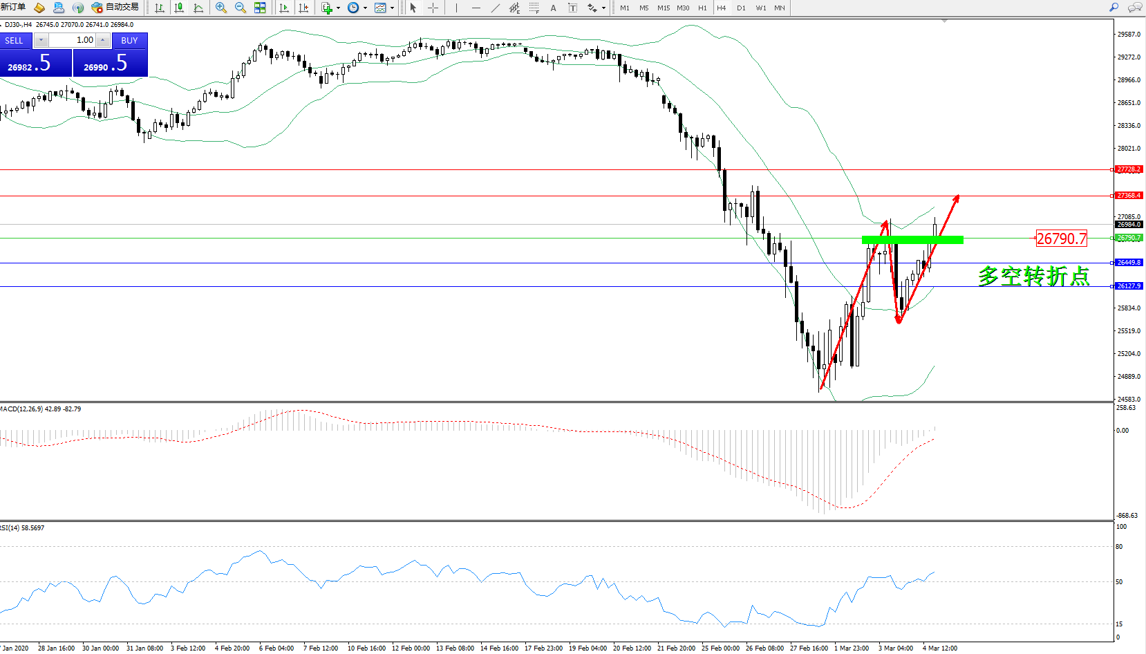 道琼斯指数34日(周三)收盘上涨1173.50点,涨幅4.53%,报27090.86点。美国10年期国债收益率在1%下方徘徊,而市场认为美联储的行动还没结束,之后会有进一步的降息。此外,美联储的行动也加大了其他央行宽松行动的压力,主要央行宽松的预期均有所升温,这带给股市长期的支撑。美联储降息50个基点之后的新闻发布会上,美联储主席鲍威尔的措辞是有点模糊的。一方面,他确认为目前的政策立场是适宜的,另一方面,他又指出美联储“准备好了使用相关工具并作出适当行动”。