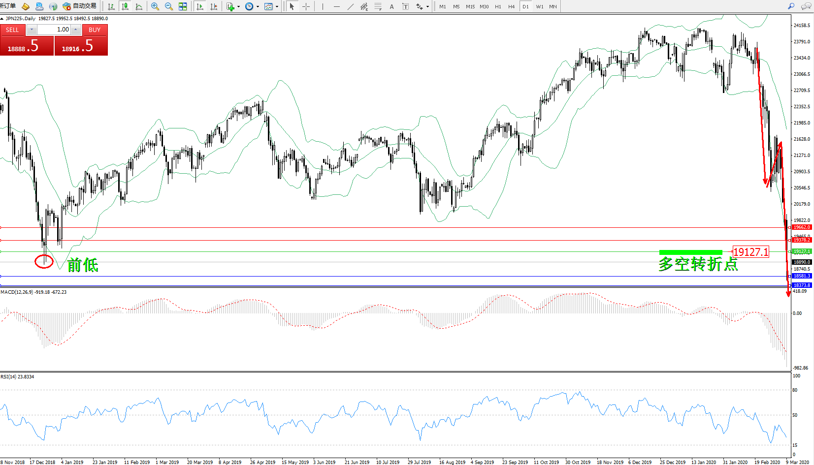 日经225指数39日(周一)收盘下跌1117.25点,跌幅5.38%,报19632.50点。原油市场的暴跌引发连锁反应,全球股市纷纷暴跌,市场恐慌情绪空前,日本内阁府9日发布二次统计报告,将2019年第四季度日本实际国内生产总值(GDP)环比降幅调整为1.8%,按年率计算降幅为7.1%。在内阁府217日发布的初步统计结果中,去年第四季度日本实际GDP环比降幅为1.6%,按年率计算降幅为6.3%。二次统计报告反映了法人企业统计等最新统计数据。企业设备投资大幅下调是此次报告数据发生明显变化的主要原因。日本2月经济观察家当前指标跌至2011年以来最低,日本2月经济观察家前景指数录得2008年金融危机以来最低值。