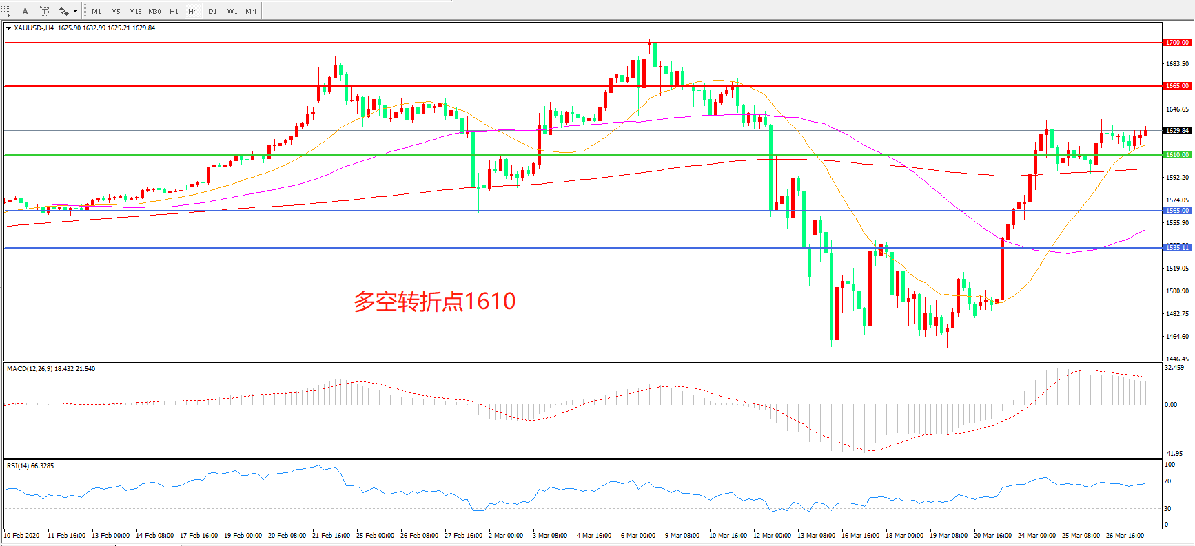多空转折点:1610.00