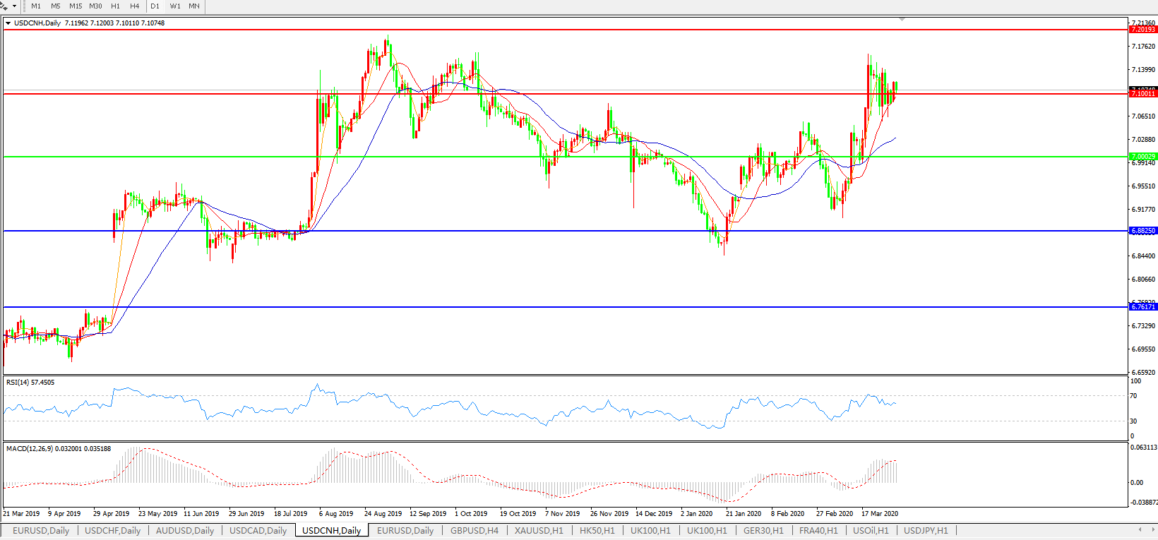 美元兑人民币USDCNH 日线图: