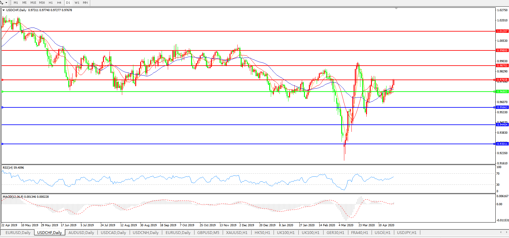 美元兑瑞郎USDCHF 日线图: