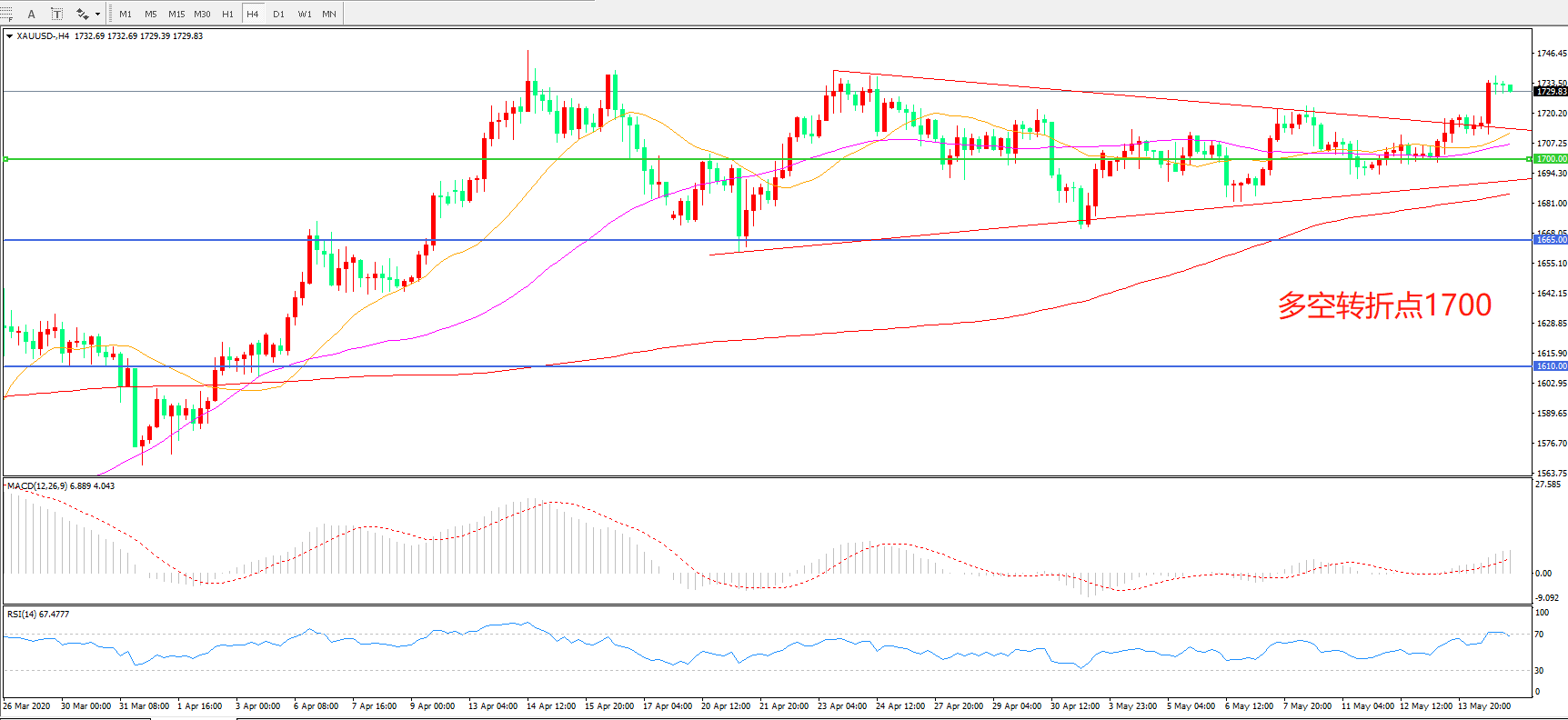 交易策略: 在1700.00 之上看涨,目标1750.00 1785.00