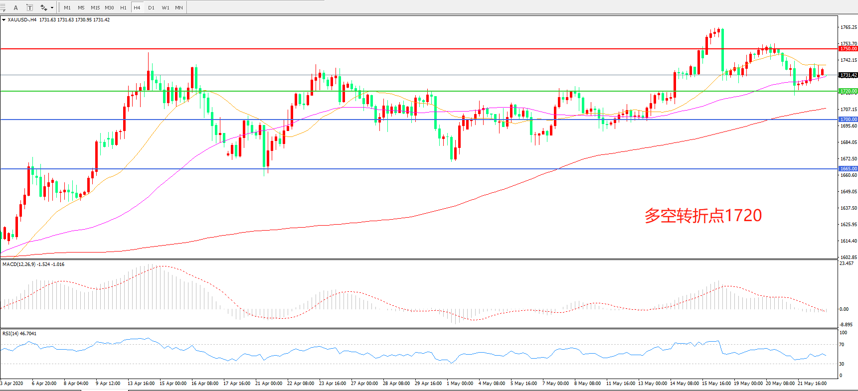 交易策略:  在1720.00之上看涨,目标1750.00   1785.00