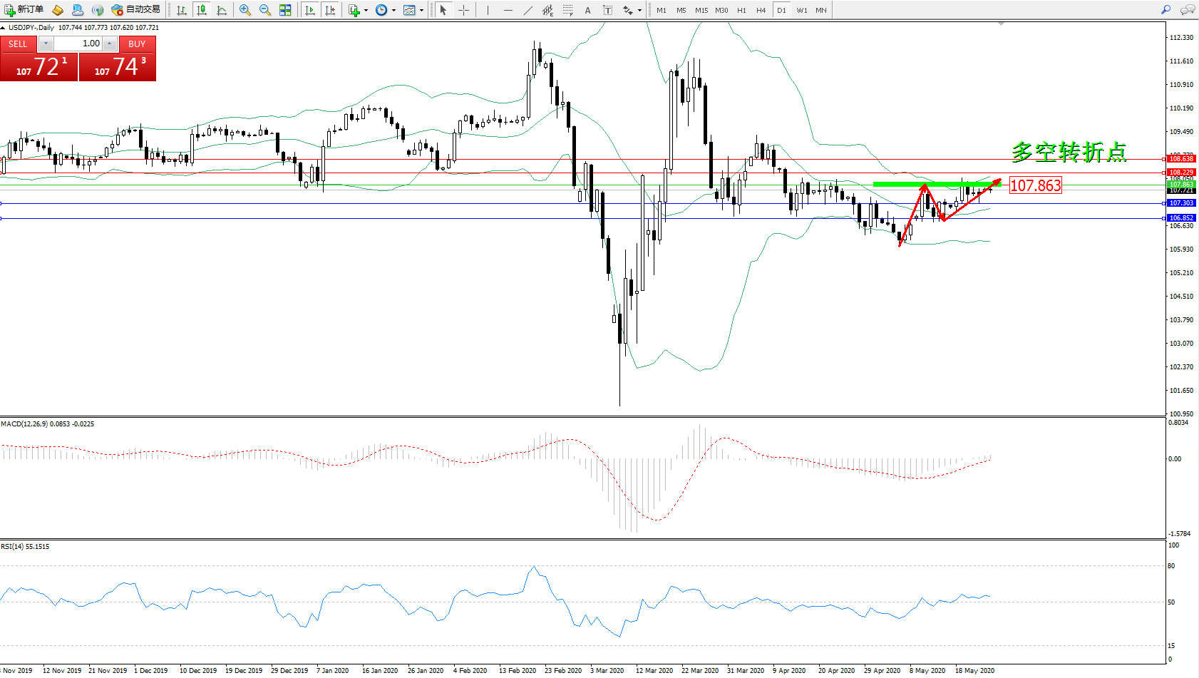 美元兑日元涨0.07%至107.71;据经济大臣西村康稔周一提交的一份计划,日本势在解除东京周边以及北海道的封锁,从而结束全国范围的紧急状态。日本首相宣布自本周起该国全境解除隔离封锁措施,此消息为市场早已获悉之状况,因此市场风险情绪受此影响有限。但相比解封,日元投资者更应该关注近期的地缘与贸易风险。日内再美国休市的背景下,美元兑日元汇价继续保持横盘走势,虽然全球市场投资者在周末过后风险胃纳回升,但谨慎情绪犹存,在此状况下,美元与日元汇价也大体保持了同步进退的走势。