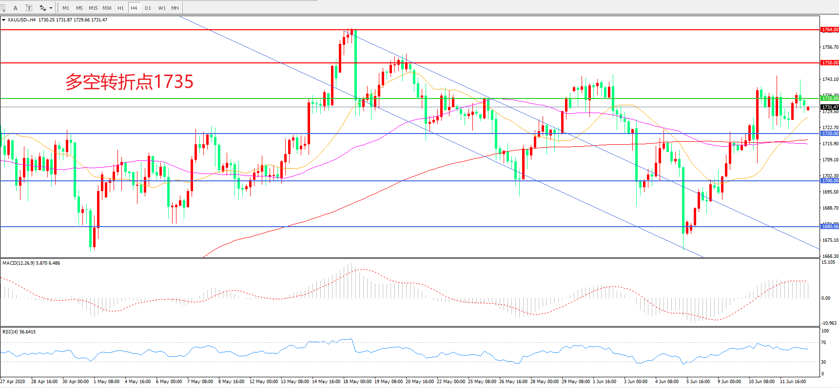 多空转折点:1735.00