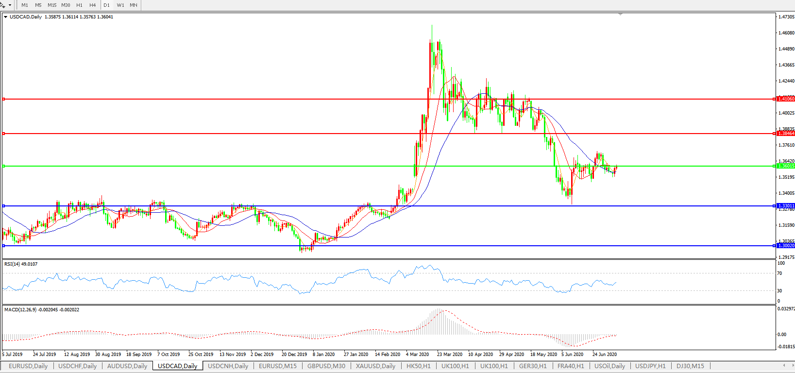 美元兑加元USDCAD    日线图: