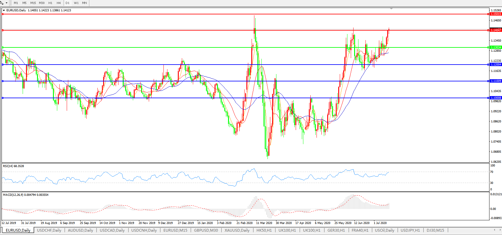 交易策略:1.1300上方看涨,目标1.1400、1.1500