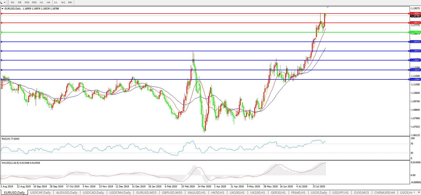 欧元兑美元EURUSD   日线图: