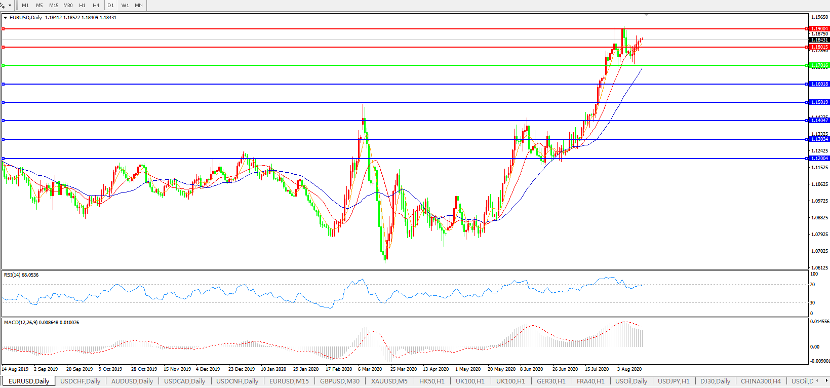 欧元兑美元EURUSD   日线图: