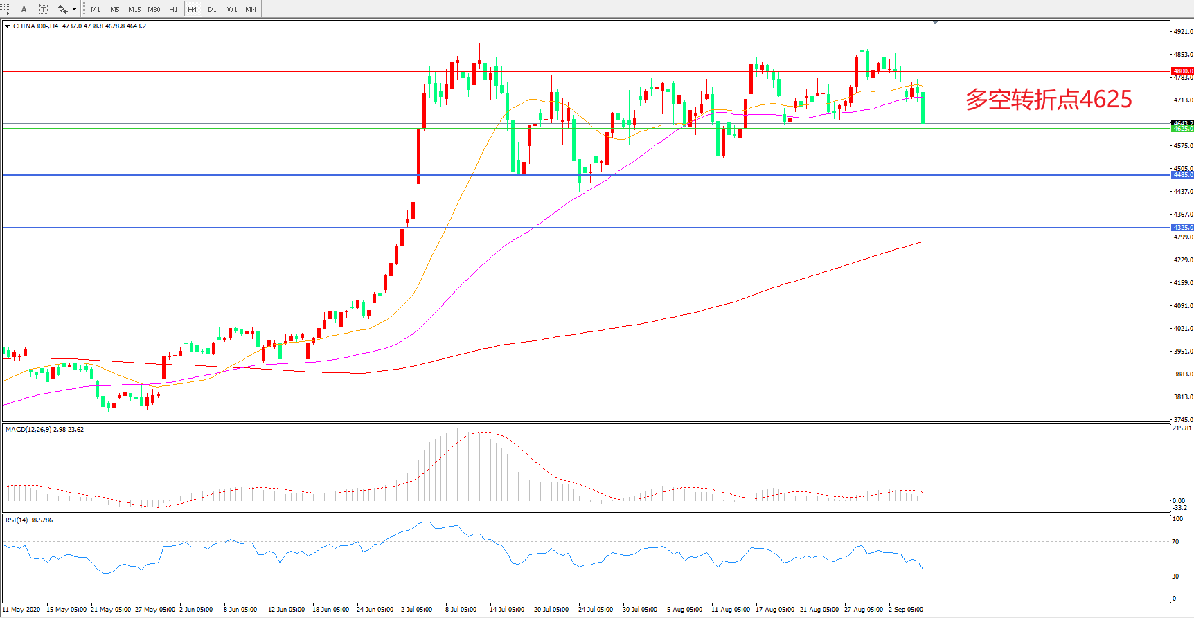 多空转折点:4625.00