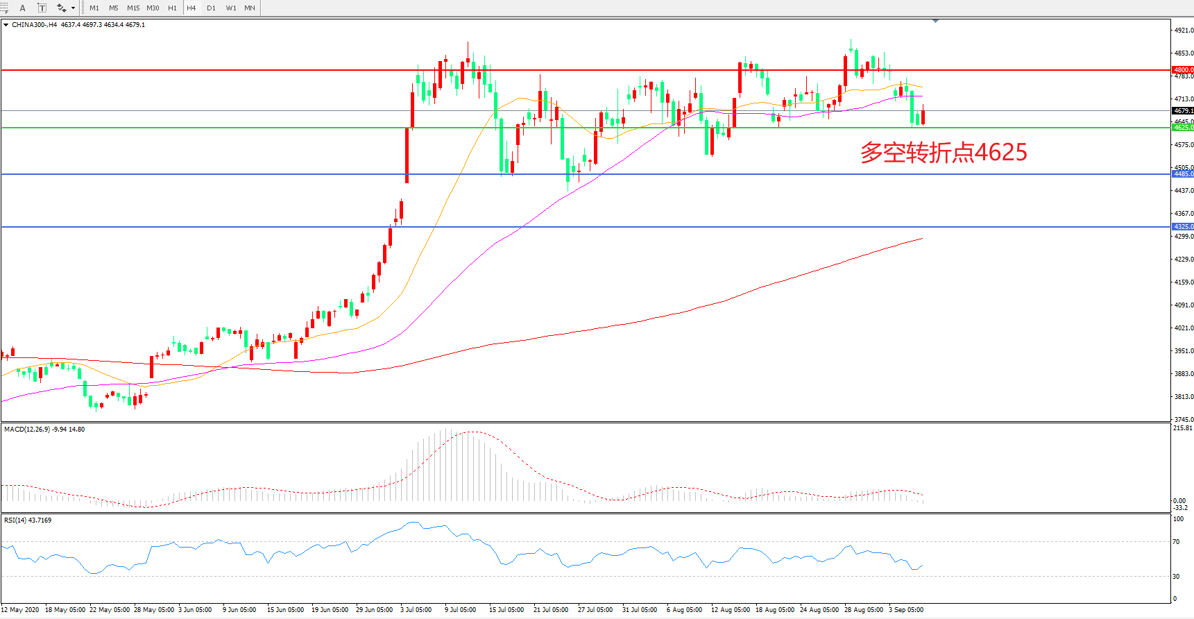 多空转折点:4625.00