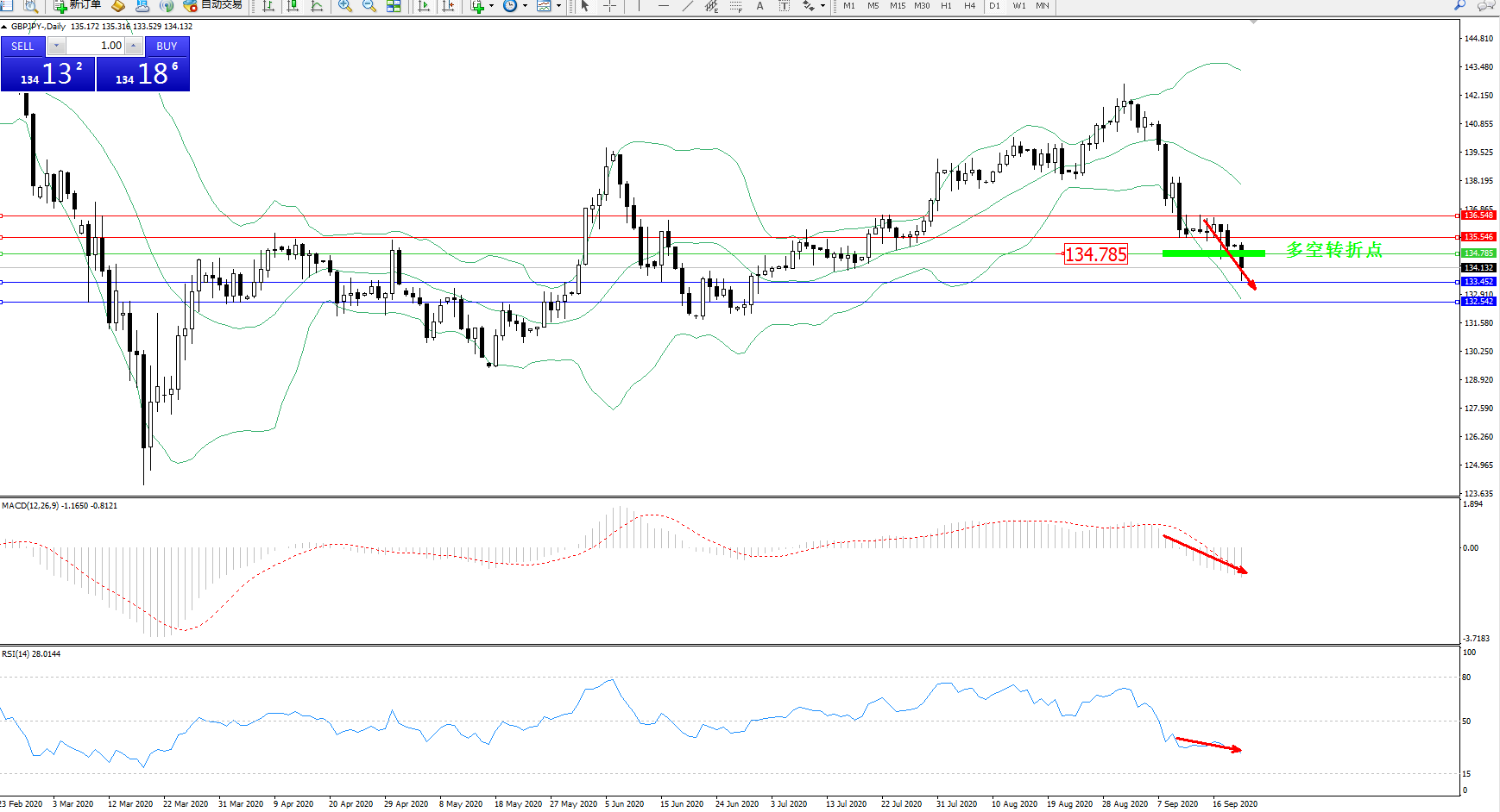 技术点评:高位空头动力下行态势良好,延续布林带指标下轨内侧市场下挫走势持续中,空头动力未见止步迹象,布林带指标呈张口走势持续中,且有维持向下移动趋势态势,MACD指标处于0轴线下方空头区域弱势整理向下移动中,RSI指标处于空头区域维持整理平移中;